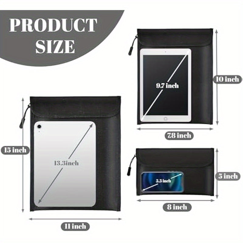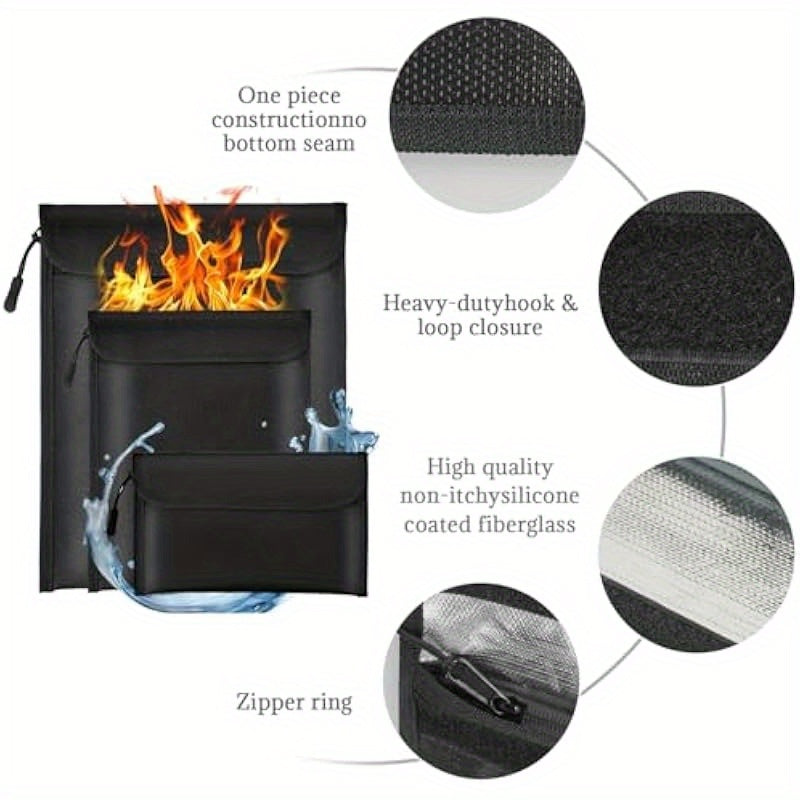 Key Features: Fireproof Waterproof Document Bag 2000 3 Pack Fireproof Bags for Cash Documents with Locking Zipper Waterproof Money Bag Passport Holder Important Document Organizer Pouch Black. It comes with RFID - blocking and waterproof features, multiple compartments, and a durable zipper closure.